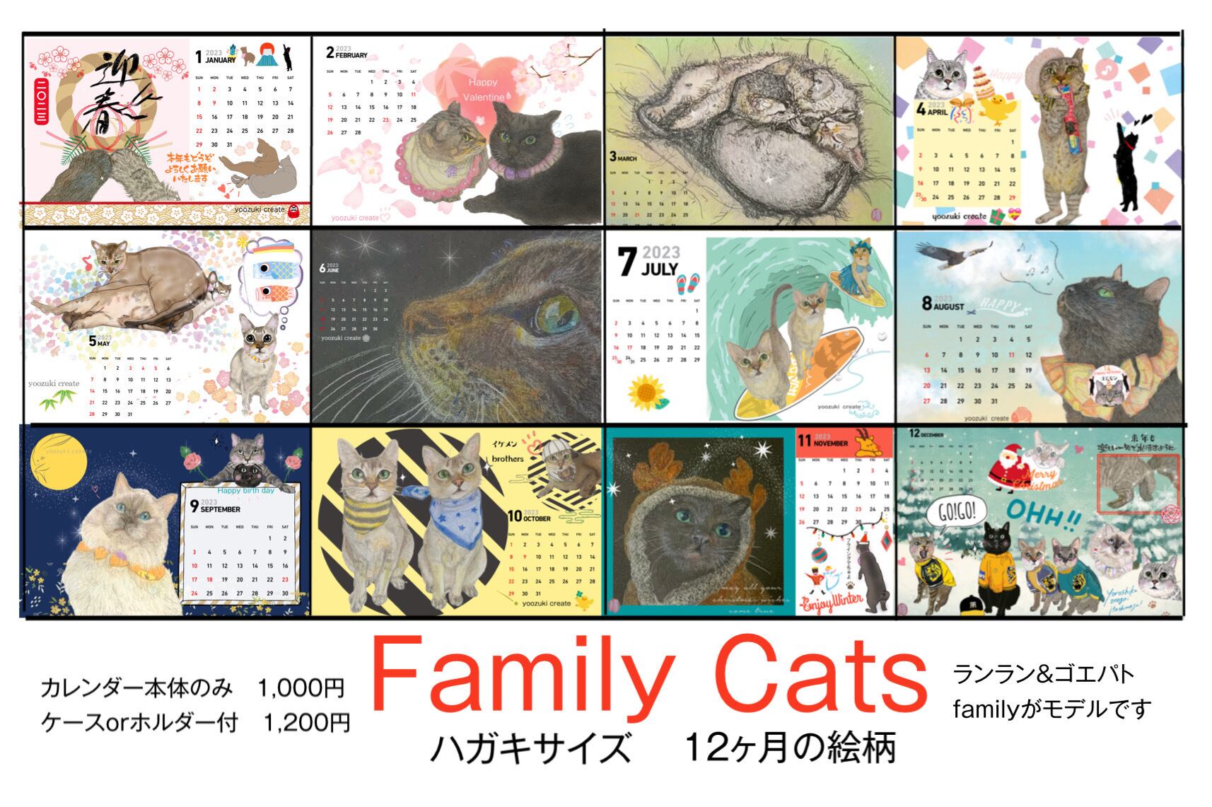本体のみ☆2023年Lovely / Family Catsカレンダー