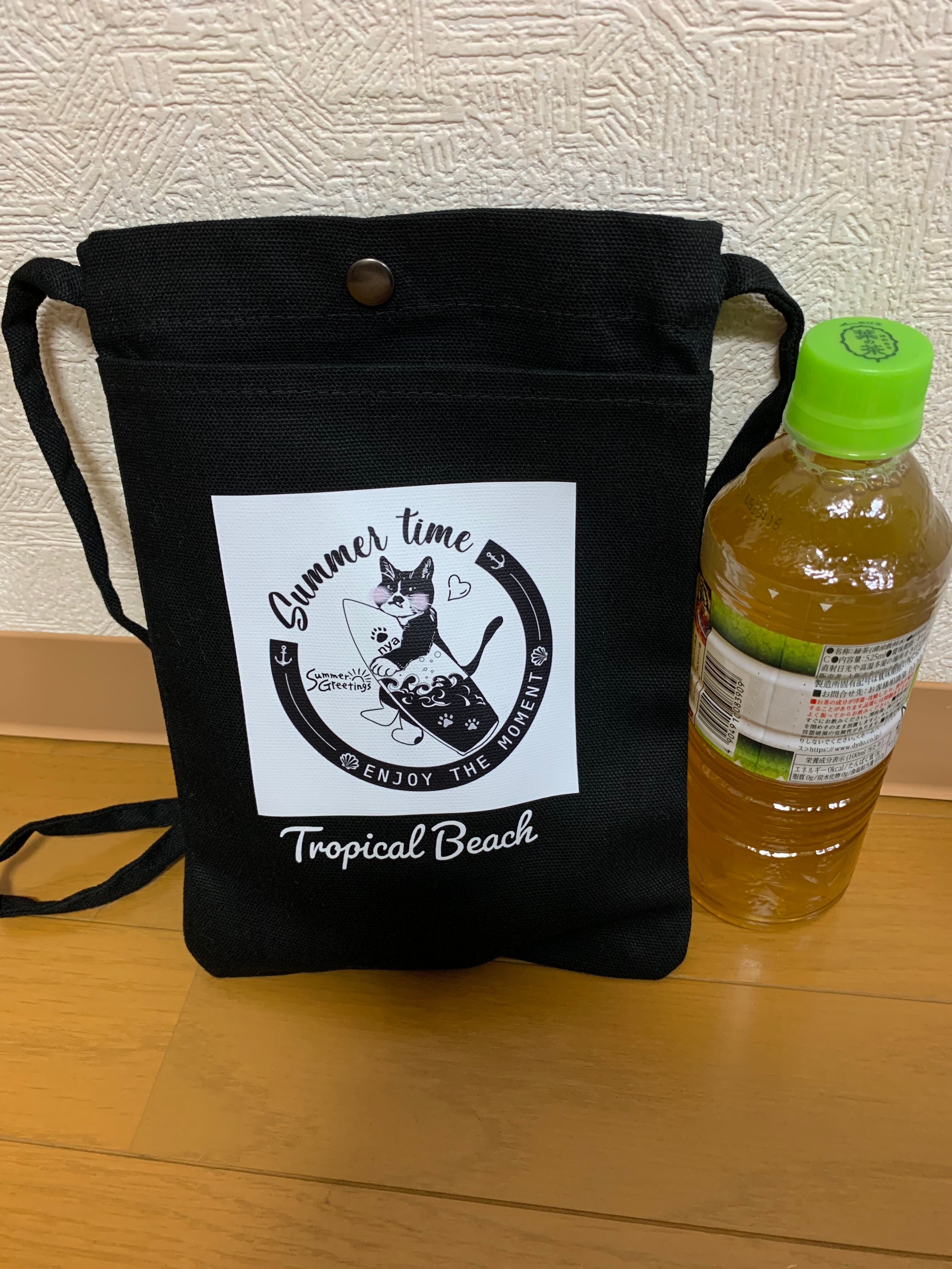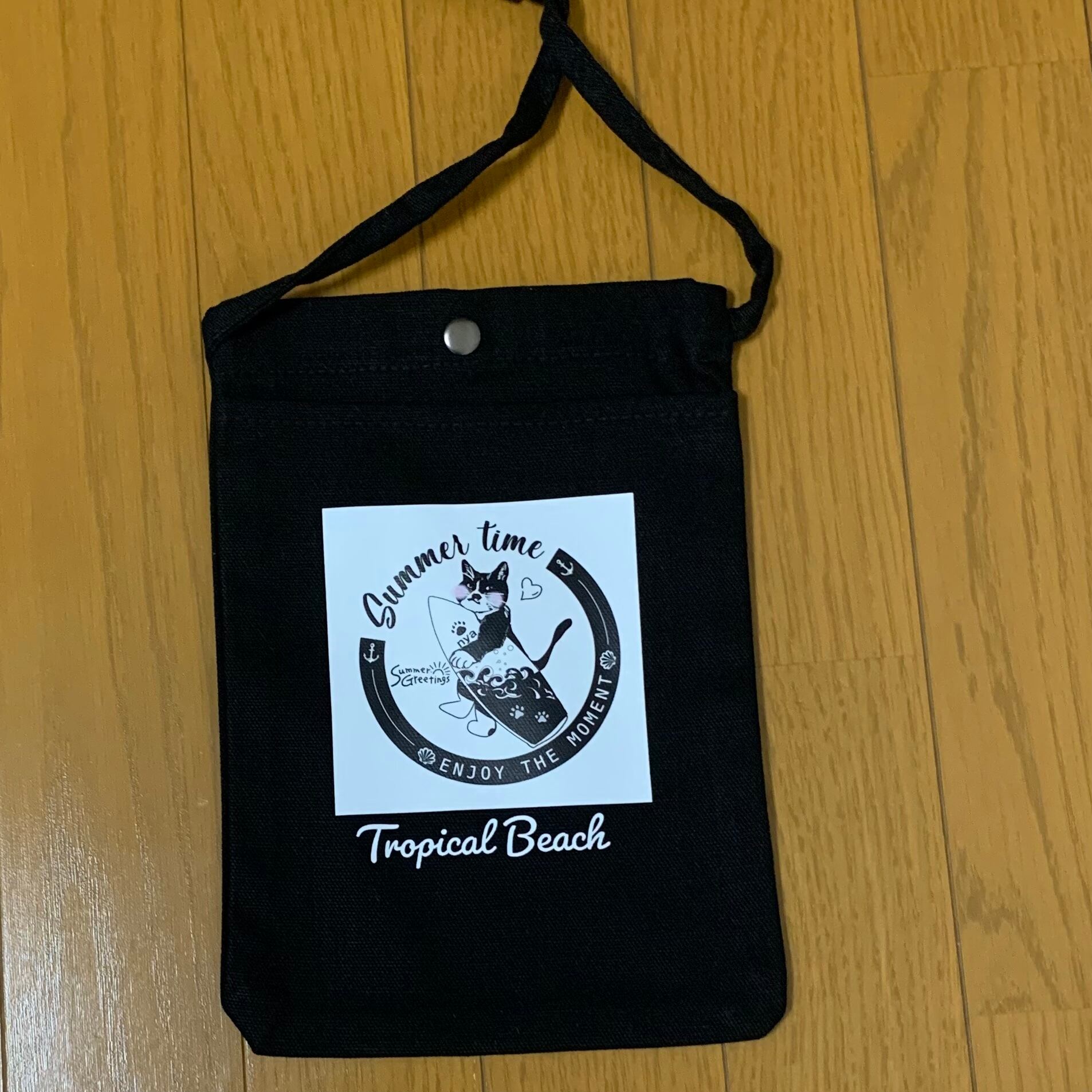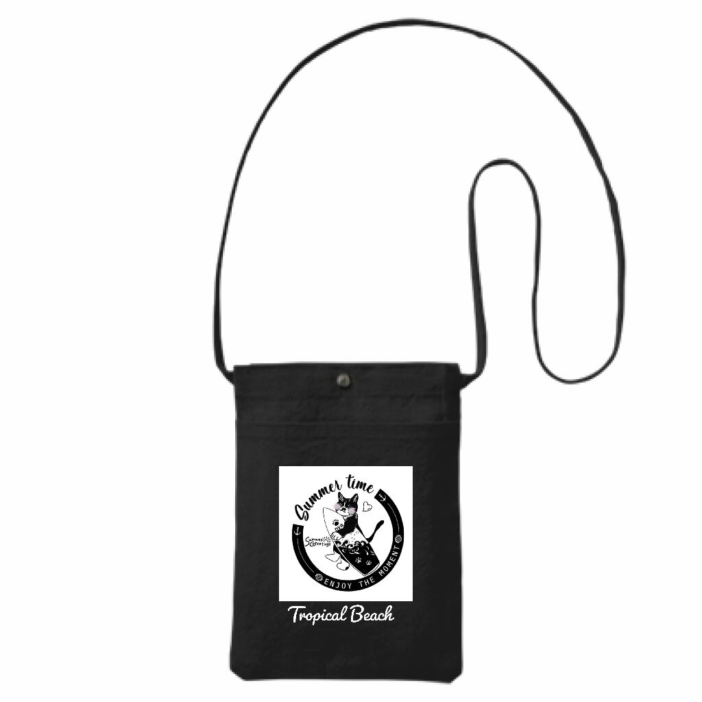 10oz キャンバスフロントポケットミニサコッシュ・ボタンタイプ*ナイトBLACK☆トロピカルビーチ